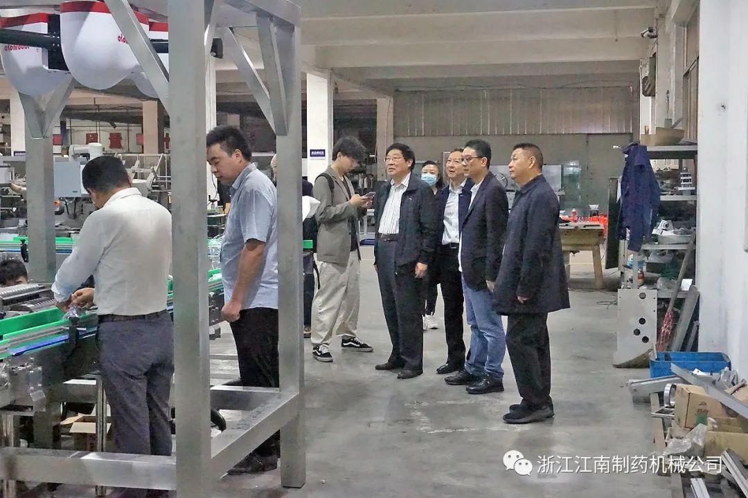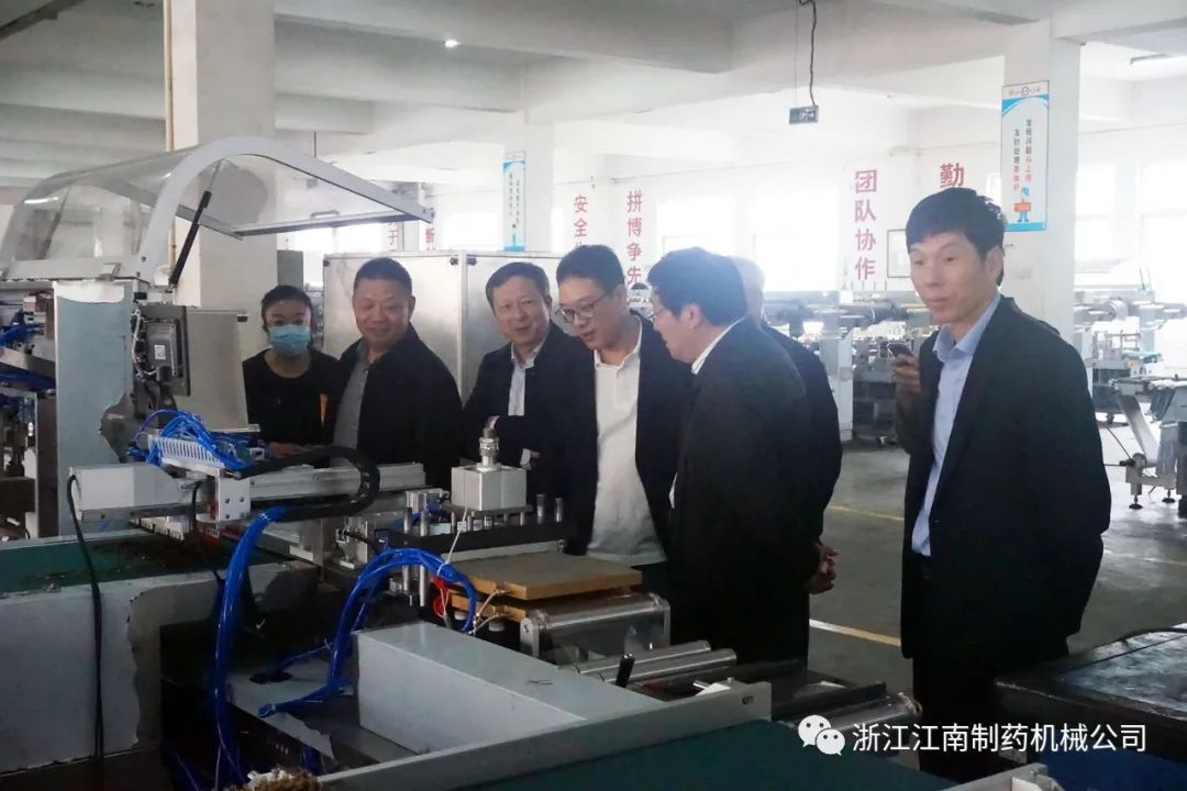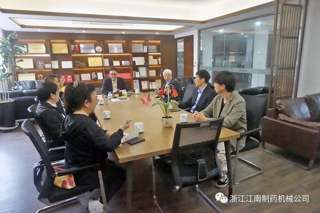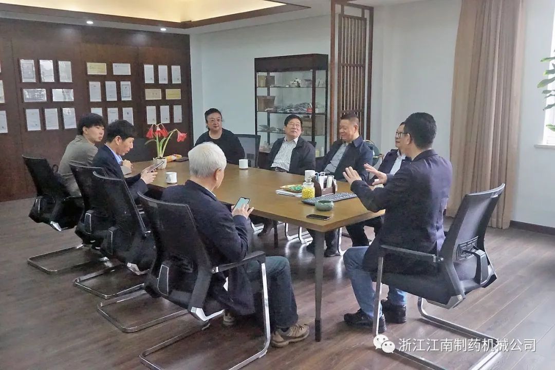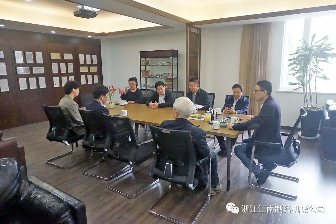 4月25日,中国制药装备行业协会秘书长陈沪生、张炳勋,协会副理事长王沪育、张同祥等领导一行,在瑞安地区主要制药机械企业负责人陪同下,莅临浙江江南制药机械有限公司调研指导工作。