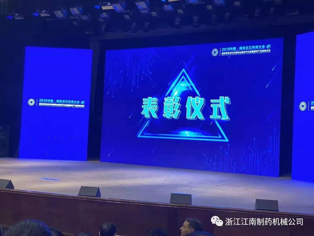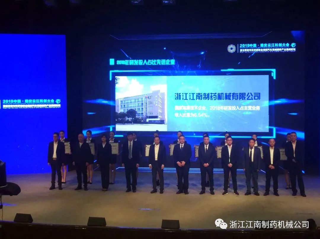 大会现场,还表彰了浙江江南制药机械有限公司等12 家省第一批现代服务业与先进制造业深度融合试点企业、浙江省“四个百项”示范项目企业、列入浙江省重点研发计划项目企业,2018年产学研合作优秀企业、2018 年研发投入占比先进企业。