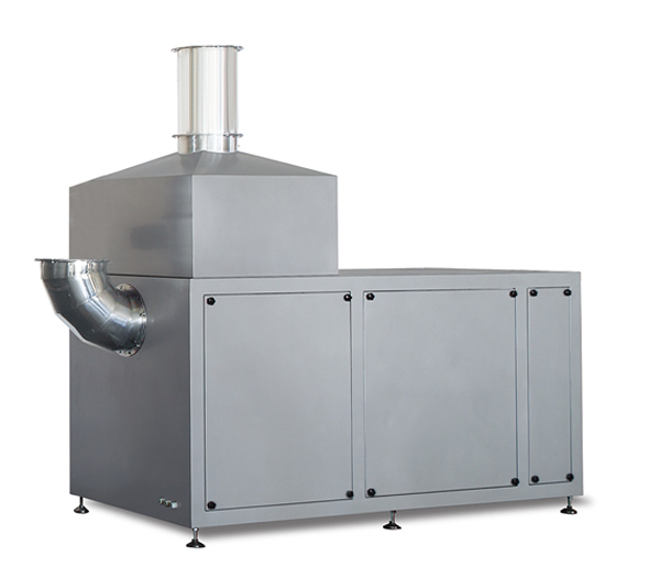 空气经离心风机吸入,通过初效、中效、表冷除湿、高效过滤器达10万级净化且能吸收空气中的水份,使吹入的空气干燥,包衣效果更好,再通过热交换器(蒸汽或电热)吹入主机滚筒,并配有减震装置。
