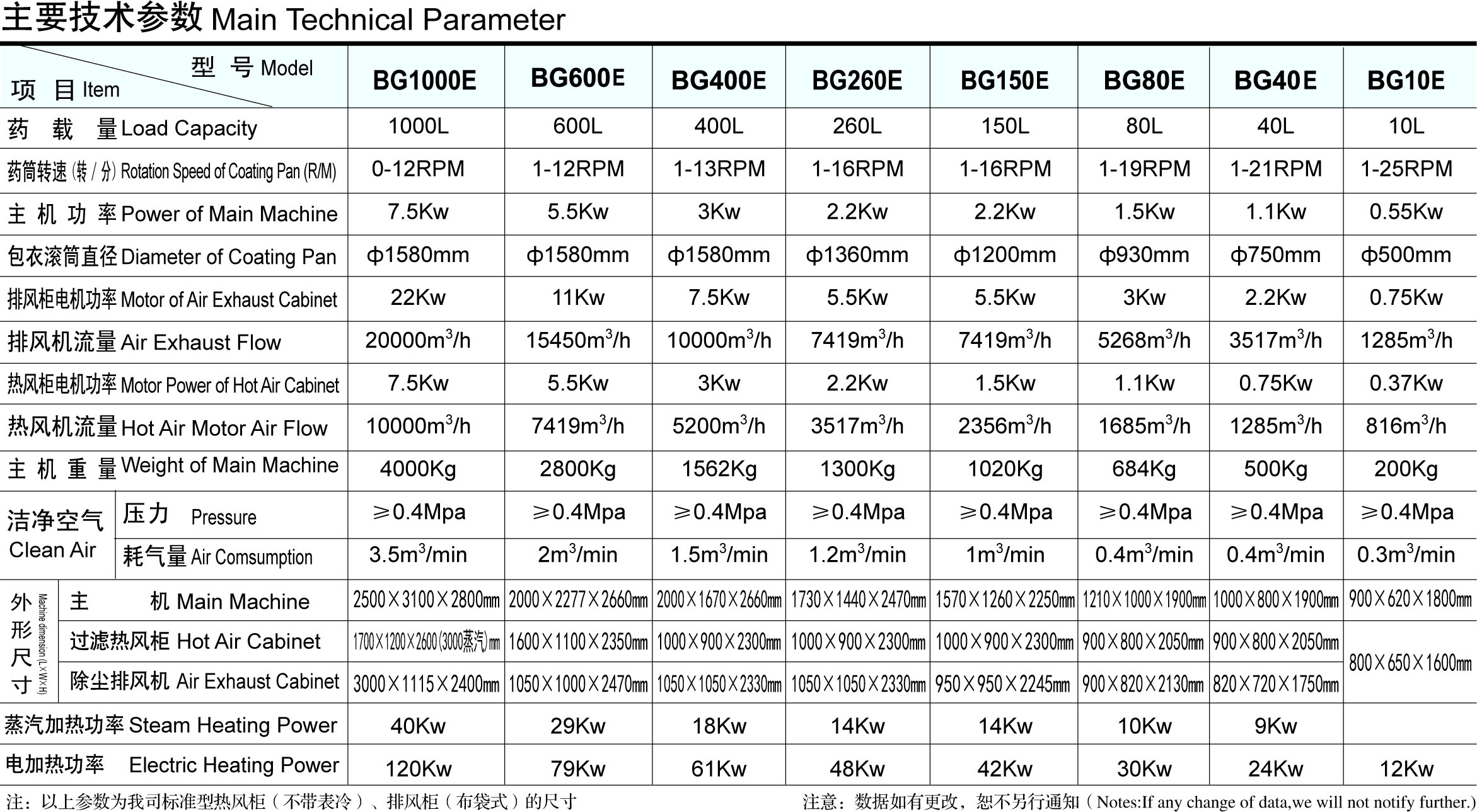 适用于制药、食品、生物等领域的中西药片、丸剂、微丸、小丸、水丸、滴丸、颗粒制丸等包制糖衣、有机薄膜、水溶薄膜和缓、控释包衣;是一种美观、高效、节能、安全、洁净易清洗的机电- -体化设备;运行过程及过程中的负压、温度等所有工艺参数由可编程序( PLC人机界面)自动控制,操作简便,工艺先进合理。