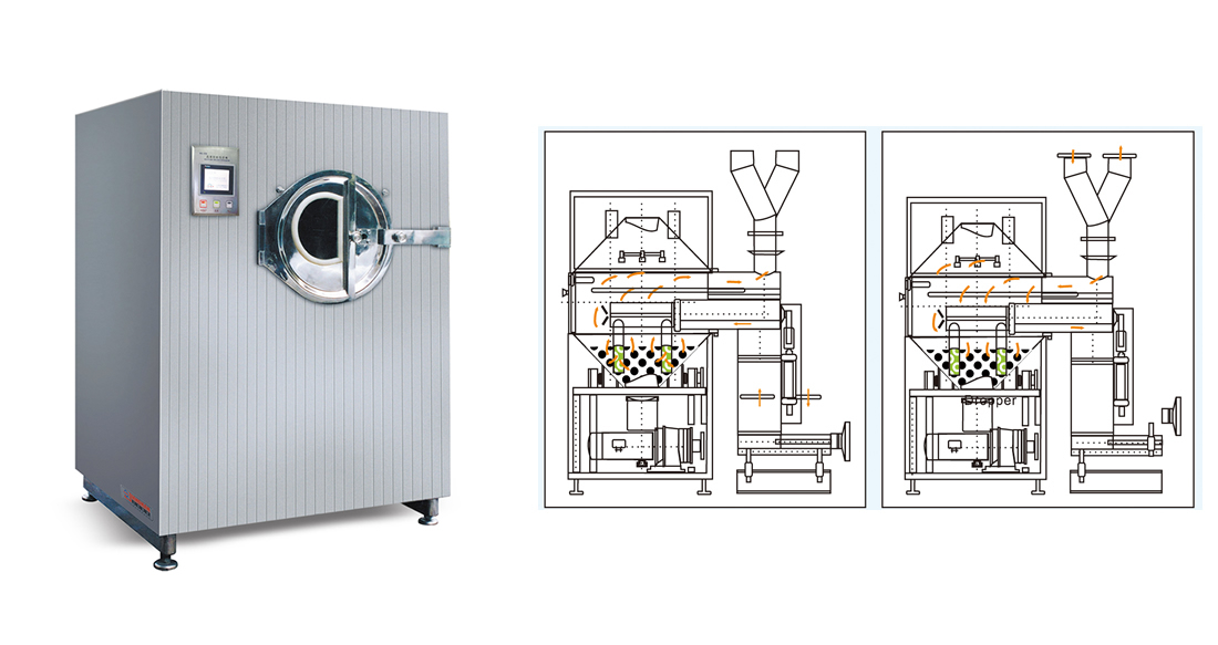 适用于制药、食品、生物等领域的中西药片、丸剂、微丸、小丸、水丸、滴丸、颗粒制丸等包制糖衣、有机薄膜、水溶薄膜和缓、控释包衣;是一种美观、高效、节能、安全、洁净易清洗的机电- -体化设备;运行过程及过程中的负压、温度等所有工艺参数由可编程序( PLC人机界面)自动控制,操作简便,工艺先进合理。